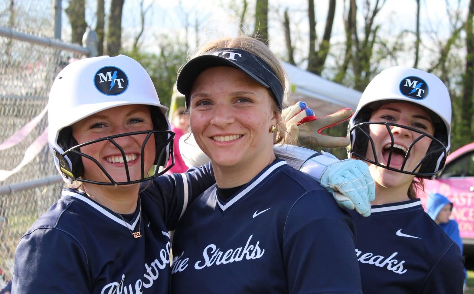 The top of the 2nd though, our Streaks reached into their tool boxes, grabbed their jacks & tire irons, and went to work on that bus like they were a NASCAR pit crew! Ellie Comerford (3rd) started off the scoring with an RBI Double, scoring Paige Hughes (C) who had tripled earlier. Sara “Maquina Doble” Hess (DP) did what she has done so many times before this season & blasted a double to LF scoring Bella Stern (2nd) & Katie Moore (LF), both of whom had walked earlier. Ava Stern (1st) wanted to “play” too smacking a triple to LF scoring Sara Hess (DP) & Ashley Bryant (CF), who had hit into a fielder’s choice earlier. May Castillo (SS) wasn’t quite ready to go back into the field without another and scored Ava Stern (1st) on a sacrifice fly. The Inning ended with the score 7-1. Our Lady Streaks could have taken a nap at this point…foreshadowing…they had already put the game out of reach, but they were not done yet. Cedar Crest had their share of doubles and did score another run in the bottom of the 2nd (7-2).